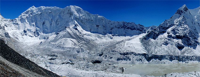 El amanecer en Dingbotse es espectacular. Una breve ascensión de 20 minutos nos sitúa en un corte desde el cual, si el día está despejado, podremos disfrutar de las espectaculares vistas del Ama Dablam, Island Peak, Baruntse y Makalu. El camino continúa por un falso llano hacia Thokla. Durante este recorrido estaremos acompañados por los gigantes Cholatse y Taboche, dos espectaculares picos de 6.300 metros. Después de la comida, remontaremos en una hora el Thokla Pass a 4.830 metros, con espectaculares vistas de toda la cordillera, y entrada natural al circo de montaña más alto del mundo. Desde aquí, alcanzaremos en aproximadamente una hora de camino fácil y llano al asentamiento de Lobuche, bajo el increíble Nuptse. Alojamiento en ‘lodge’.